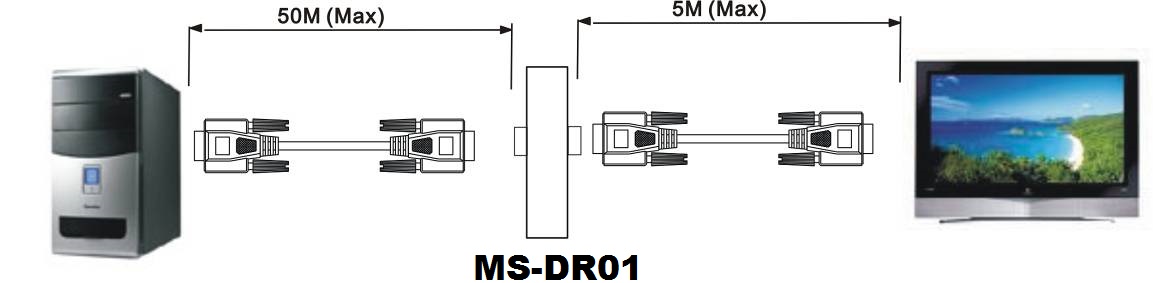 product detail DVI Repeater MS-DR01 Model: MS-DR01 Description Specifications Downloads Extends digital video up to 50 meters. Maintains multiple high definition resolutions up to 1080p or 1920 x 1200 for computers. Easy to use, plug and play. Installation View ITEM NO. MS-DR01 Bandwidth 1.65 GHz Input Video Signal 1.2 Volts p-p Input DDC Signal 5 Volts p-p (TTL) Input/Output Connector DVI-I x 2 (29 Pin) Digital Only Temperature Operation: 0 to 55ºC, Storage: -20 to 85ºC, Humidity: up to 95% Power Consumption 220mA (Max) Power Supply DC5V 1Amp Dimensions (mm) 67 x 53 x 27 Weight (g) 110