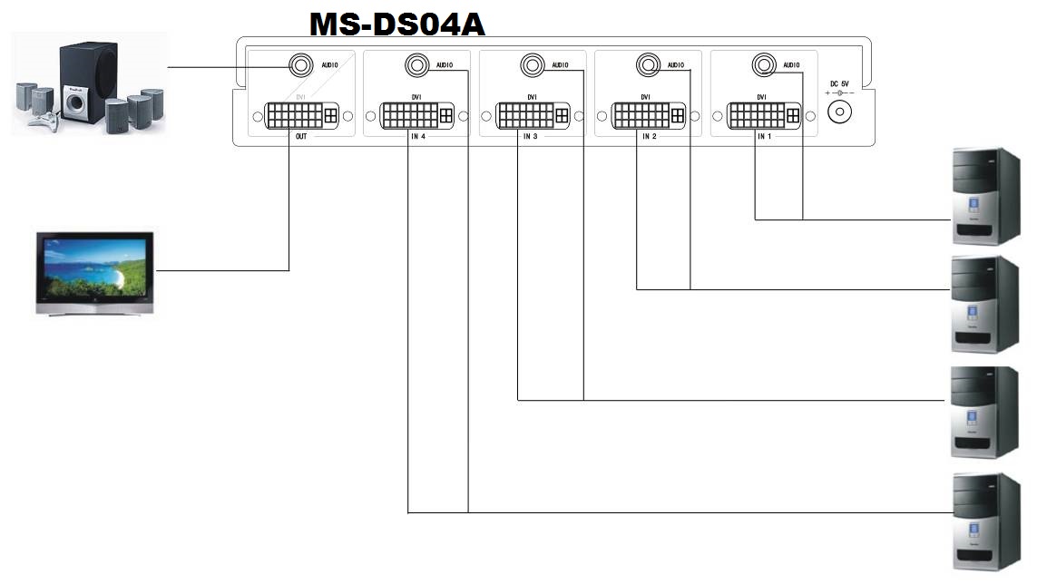 Related Products 4 Input 1 Output DVI Switcher with Digital Audio MS-DS04D 4 Input 1 Output DVI Switcher MS-DS04 4 Input 1 Output DVI Switcher with Stereo Audio MS-DS04A 2 Input 1 Output DVI Switcher with Stereo Audio MS-DS02A 2 Input 1 Output DVI Switcher with Digital Audio MS-DS02D DVI Repeater MS-DR01