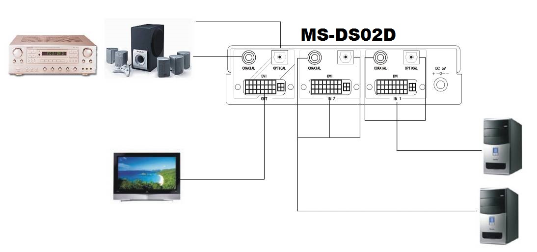 Related Products 4 Input 1 Output DVI Switcher with Digital Audio MS-DS04D 4 Input 1 Output DVI Switcher MS-DS04 4 Input 1 Output DVI Switcher with Stereo Audio MS-DS04A 2 Input 1 Output DVI Switcher with Stereo Audio MS-DS02A 2 Input 1 Output DVI Switcher with Digital Audio MS-DS02D DVI Repeater MS-DR01